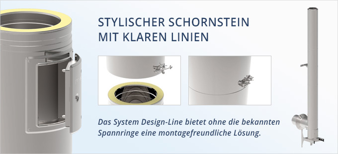 Herausragendes Merkmal ist die einfache Montage (ohne die üblichen Spannringe) sowie die gerundete Reinigungstür. Das Ergebnis ist eine harmonische Rohrsäule ohne Ecken und Kanten - die perfekte Symbiose von leistungsfähiger Technik und moderner Architektur.
